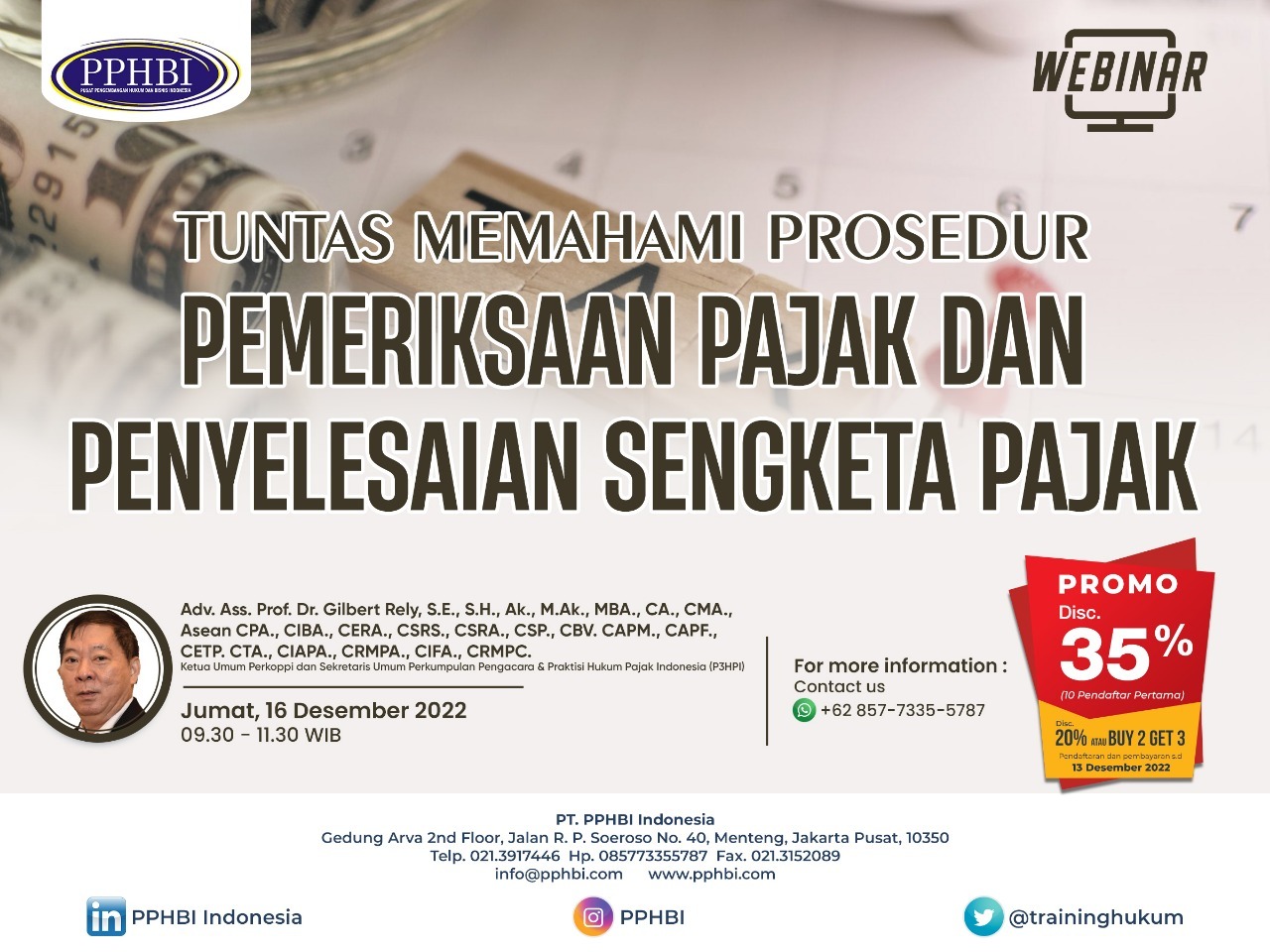 • Webbinar PPHBI – Tuntas Memahami Prosedur Pemeriksaan Pajak &Penyelesaian Sengketa Pajak